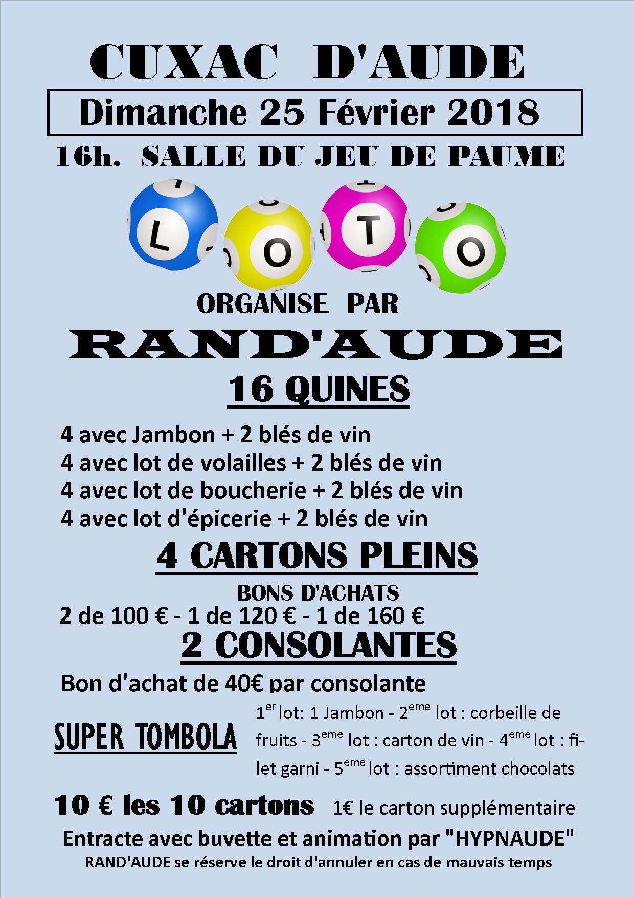 Loto de l'association sportive de randonnée pédestre Rand'Aude